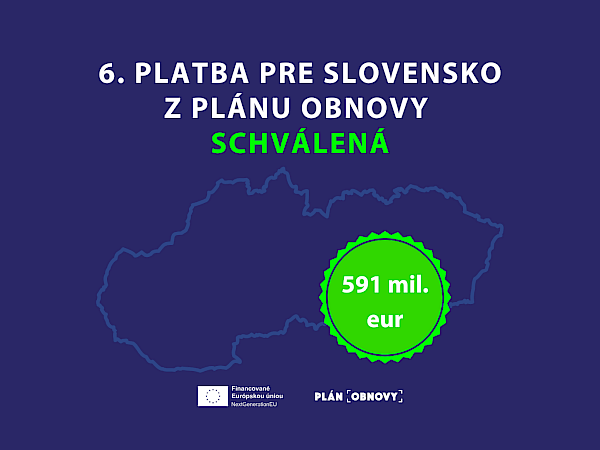 Po obdržaní platby zo šiestej žiadosti bude mať Slovensko na účte už vyše 4,55 miliardy z celkových 6,4 miliardy eur. Zároveň čakáme na posúdenie siedmej žiadosti o platbu v hodnote 658 miliónov eur, ktorú sme podali koncom novembra 2025. V roku 2026 čaká Slovensko podanie posledných dvoch platieb vo výške 1,2 miliardy eur.